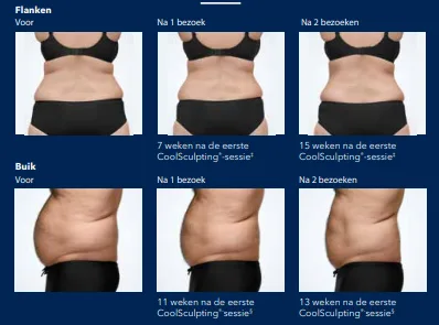 Individuele resultaten hangen af van factoren zoals de dikte van het vet, de verzorging na behandeling, en levensstijl.